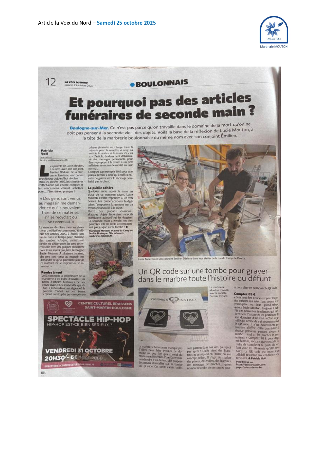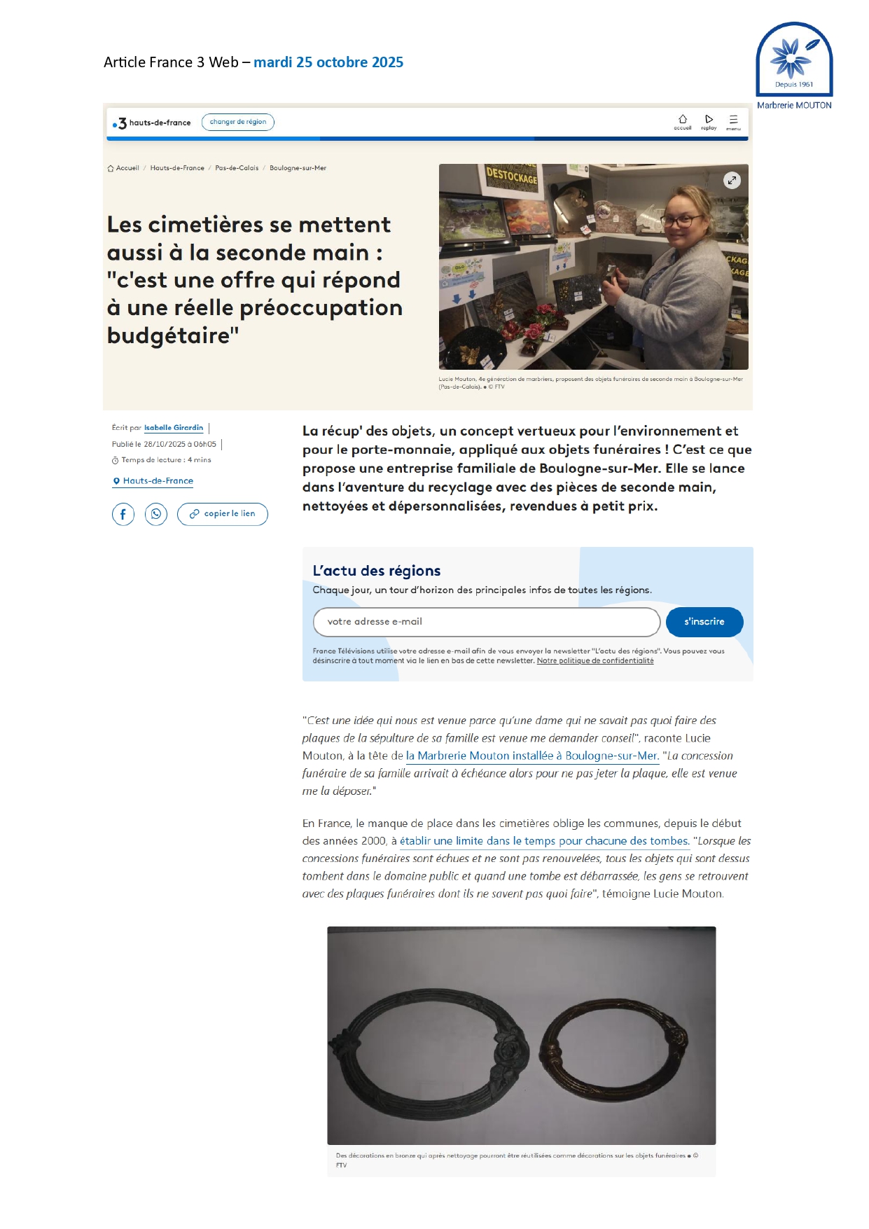 La Marbrerie Mouton vous propose désormais des articles funéraires de seconde main.