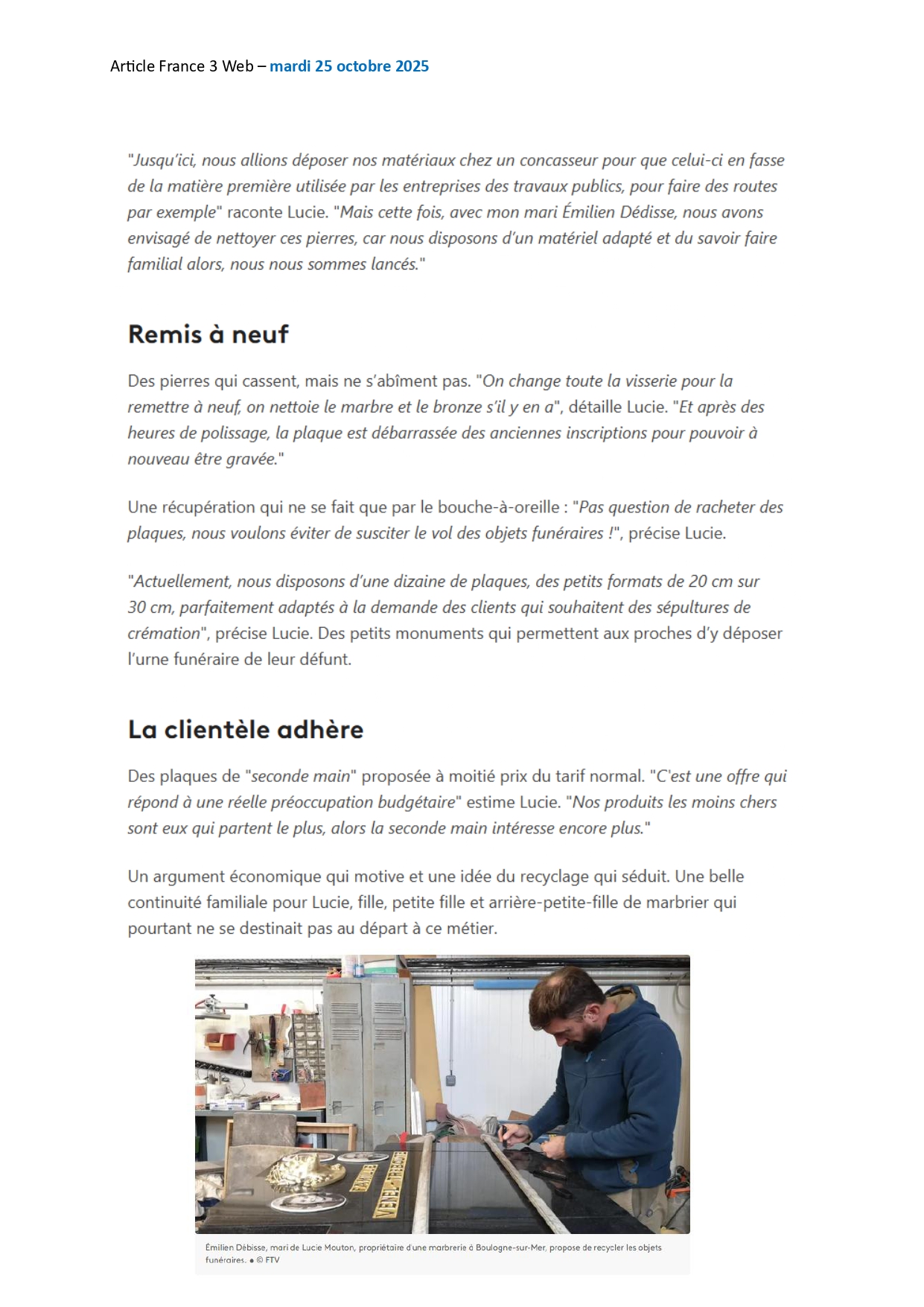 La Marbrerie Mouton se lance dans le recyclage avec des pièces de seconde main, nettoyées et dépersonnalisées, revendues à petit prix.