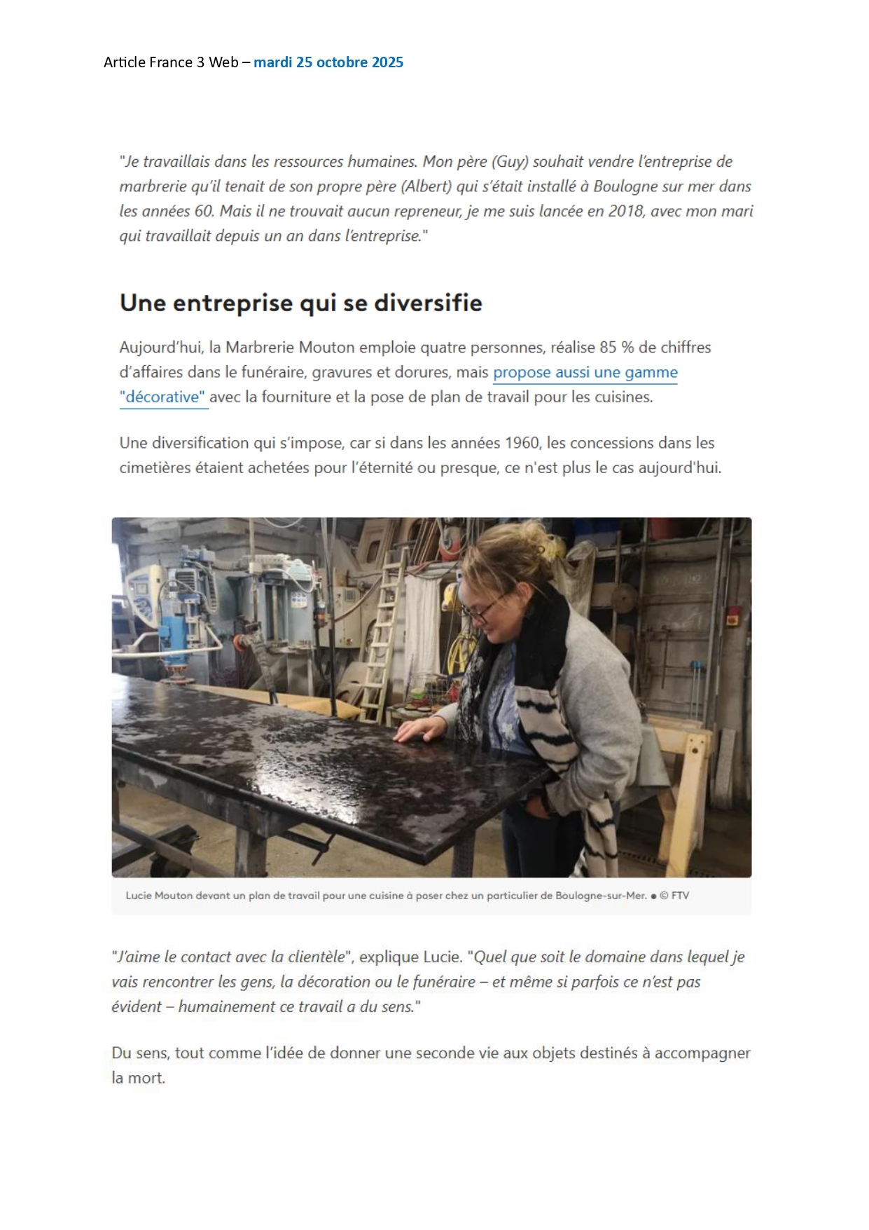Le nom de la Marbrerie Mouton est systématiquement associé à l'activité funéraire.